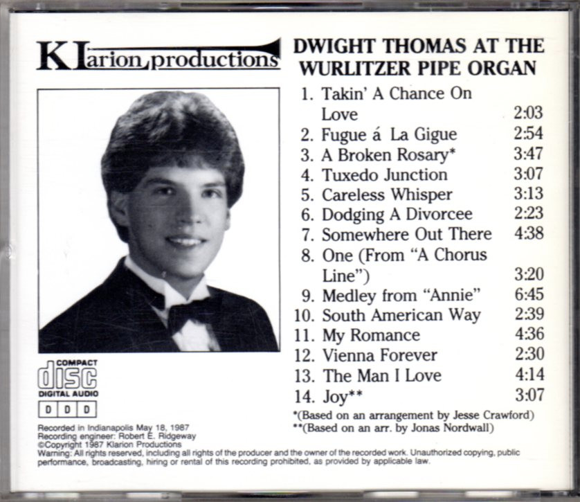 Lake Country Books and More > CDs > Instrumental > Dwight Thomas At The Wurlitzer Pipe Organ