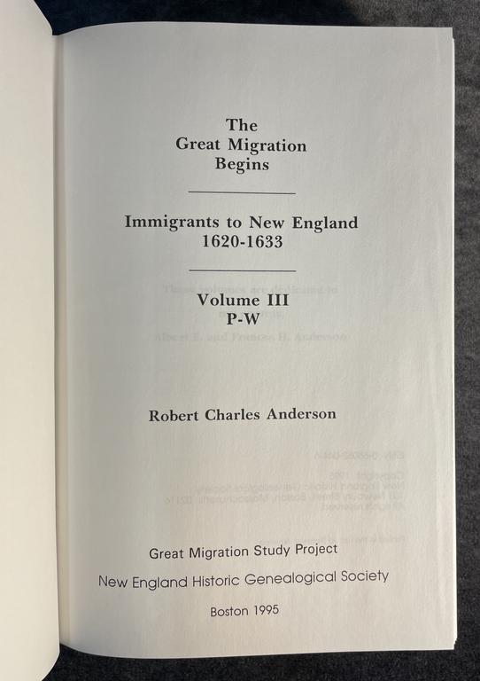 Title: The Great Migration Begins Immigrants to New England 1620-1633 Volume III 3