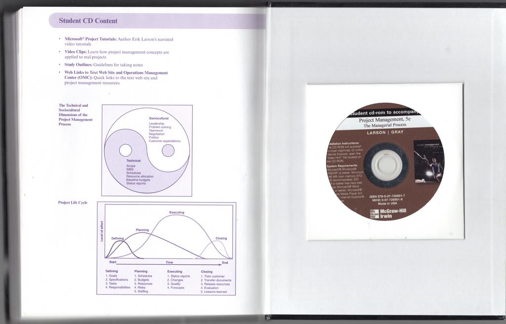 Notes: Solid copy with neat highlighting. Missing trial version of MS Office Project CD, INCLUDES unopened student CD. Cover is glossy with mild surface wear; bumps to bottom cover corners and spine ends. Binding is tight and square.
